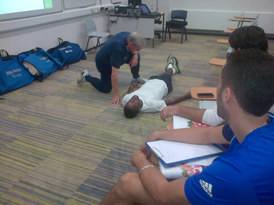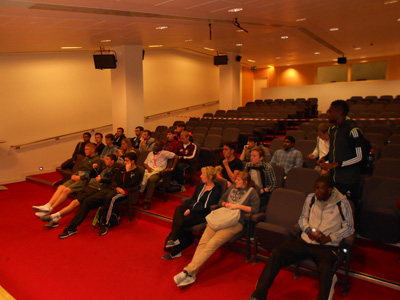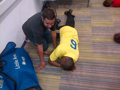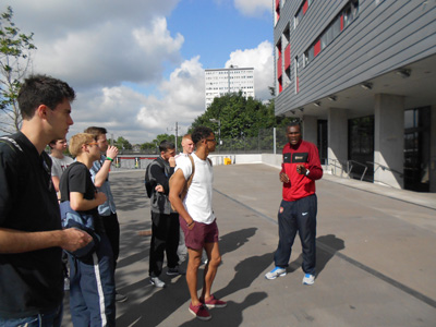 We got to tour the Emirates during the week, and it was one of the greatest experiences in our lives. How else can this be explained by two Barbadians, from the Pine community, seeing a world-class stadium, sitting where Robin Van Persie sits in the changing room, where Arsene Wenger sits on the bench, and where the billionaires mingle in the Diamond Suite? Since we got here Tito and I have been busy with our cameras and some of our fellow Gappers poke fun at it, all in good fun of course. Maybe they can’t fathom that we don’t get to see things like this where we come from, unlike they do, but maybe if they get to come to Barbados to do their part of the programme they would understand. We got started with the coaches’ education part of the programme, at Rosemary Gardens. It was a little challenging at first. At 34, I am probably the oldest person here, as many of the participants are fresh out of college or university, and as young as seventeen!!! This makes my two years with The Brewster Trust all the more beneficial, since that would have prepared me physically and mentally for this month. Another segment of coaches’ education was the classroom sessions on Health and Safety with Alan Sefton which were very useful. Here we worked in groups and it was good to share our experiences. We finally came to the end of week 1 and I will enjoy the rest period.”
