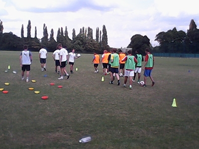 Today we did Dribbling continuation off the past few days. Dribbling is running with the ball at speed but the ball is under your full control. One of yesterdays basic warm ups was hand ball. Jason one of the Gappers took the session. We were divided into two teams and a goal could only be scored by a header. We also went through some variations in football tennis. Today as coaches we were put on the spot to come up with drills of our own.