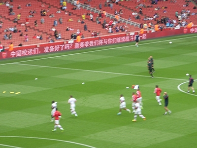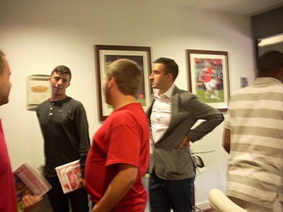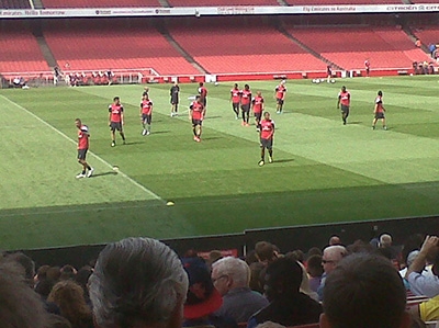 Thursday was Members’ Day at the Arsenal stadium and the Arsenal Gappers were volunteers to hand out flyers to the fans as they came in. The gappers were to meet John at the Arsenal letters at 9:30, the persons coming from the Chester House were almost late because Renaldo wanted to stay up late and watch the Real Madrid vs. Chelsea game which started at 2 am. When I went to breakfast after I got ready, I didn’t see Renaldo so I decided to go see if he was ready, instead he was in bed and it was 8:15 and we were leaving at 8:30. Mark (another gapper) was so worried we were going to be late he couldn’t stop shaking; I thought he was going to have a fit. Luckily, Renaldo came down in time so we could get the bus and we there just in time. I felt really bad for Mark because he broke his glasses that morning and he supports Arsenal and he couldn’t wait to see them, he even went to bed early the night before. Renaldo acted like it was fine to wake up late and made us have to rush. i just couldn’t talk to him the rest of that day for being so inconsiderate and immature. Members Day was great however, we saw the first team train. They had a match against about 30 Junior Gunners and Gunnersaurus was JG goal keeper. The game was hilarious, the arsenal team cheated alot but the JG won the game 4-3. Walcott kicked balls into the crowd and then we all went upstairs for an hour long Q&A.